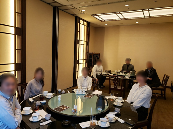 懇談会は、とあるホテルの中華レストランで行われました。まず、当社の参加者の紹介をした後、内定者の皆さんに自己紹介をしていただきました。その後は、食事を囲みながら、さまざまなお話をしました。2時間程度の懇親会でした。